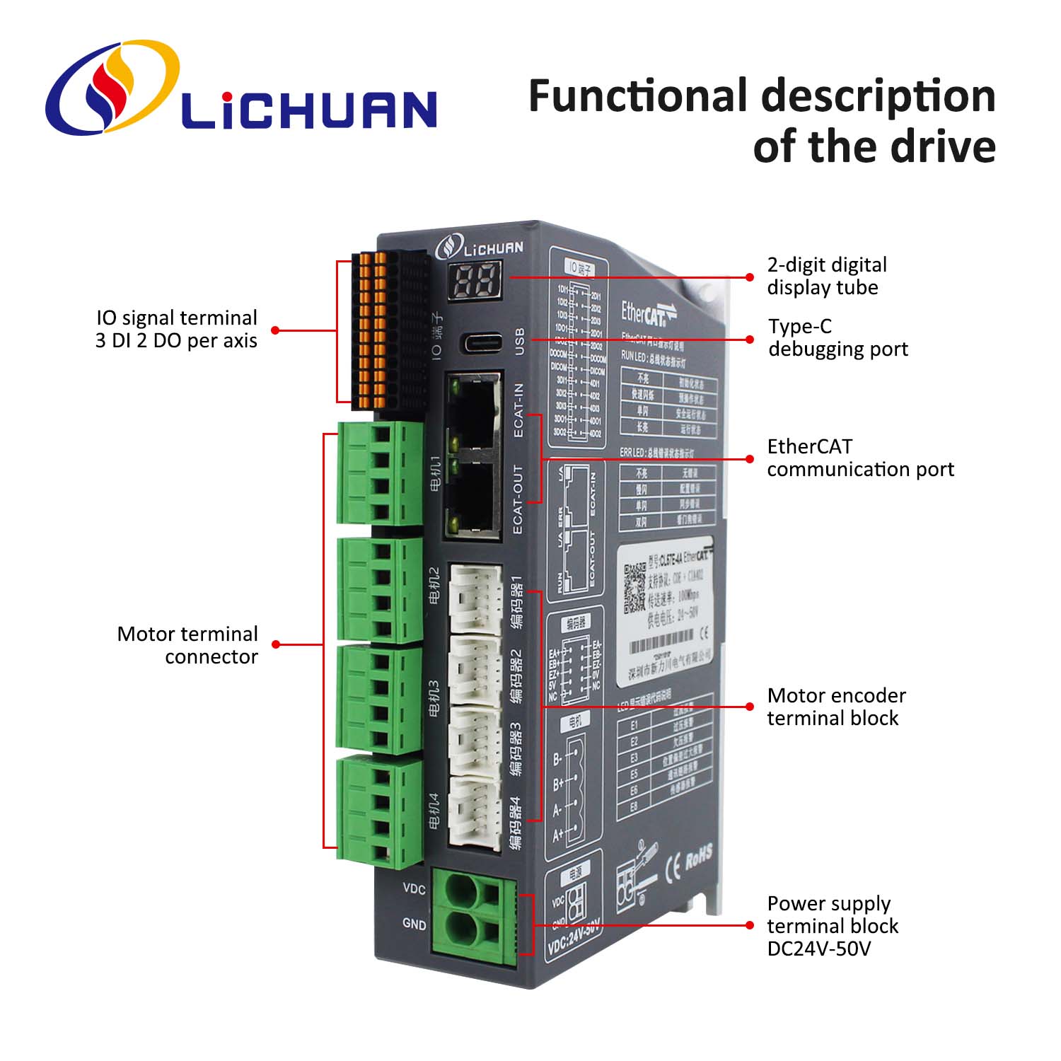 EtherCAT 2Phase Nema24 4-осевой комплект драйверов шагового двигателя постоянного тока с замкнутым контуромНовые продукты EtherCAT 2Phase Nema17 4-осевой комплект драйверов шагового двигателя постоянного тока с замкнутым контуром, изготовленный в Китае с CE/ROHS от LICHUAN®. Наша фабрика является известным производителем и поставщиком комплектов драйверов шаговых двигателей EtherCAT 2Phase Nema17 4-Axis DC с замкнутым контуром в Китае. Наш продукт отличается высоким качеством/долговечностью/стабильностью работы и низкой ценой. И мы предоставляем индивидуальные услуги.