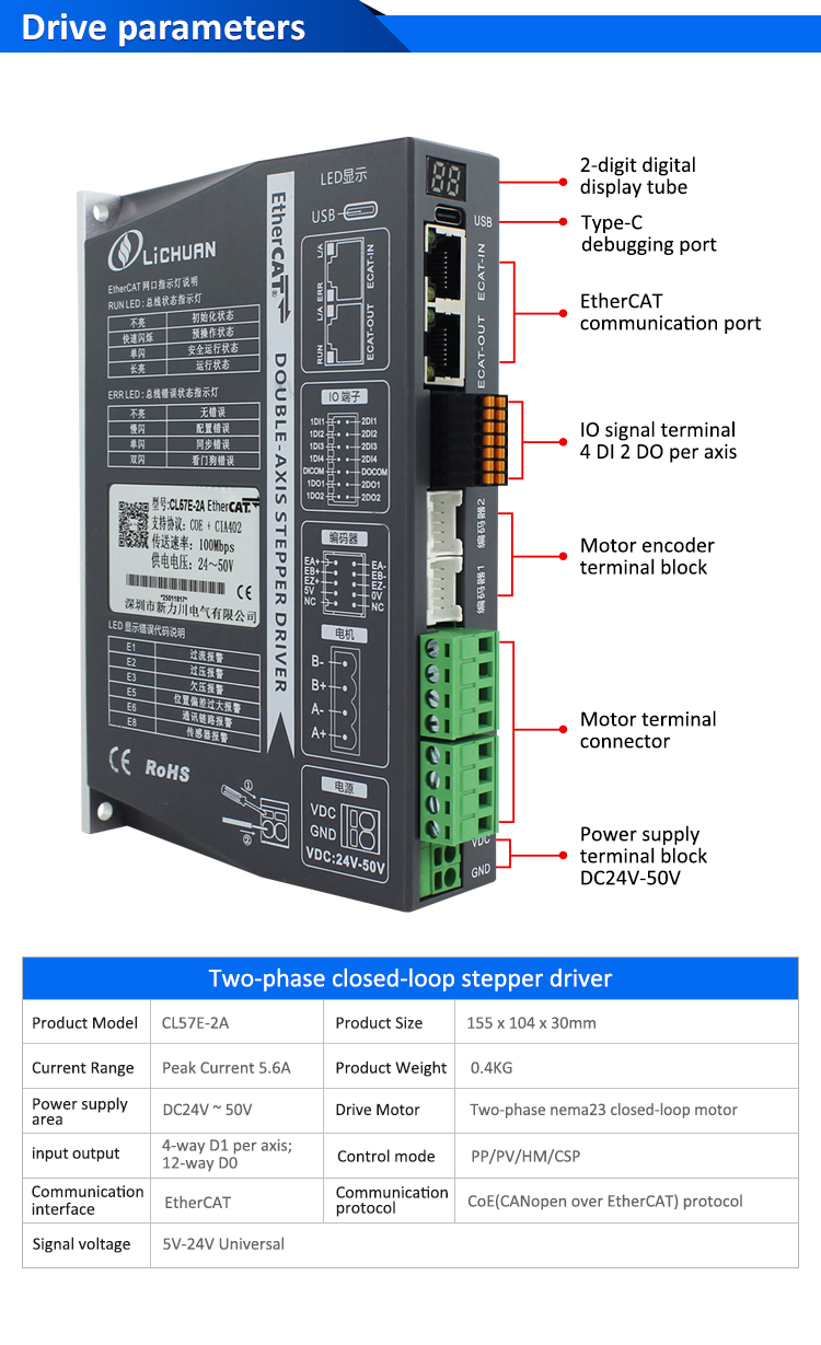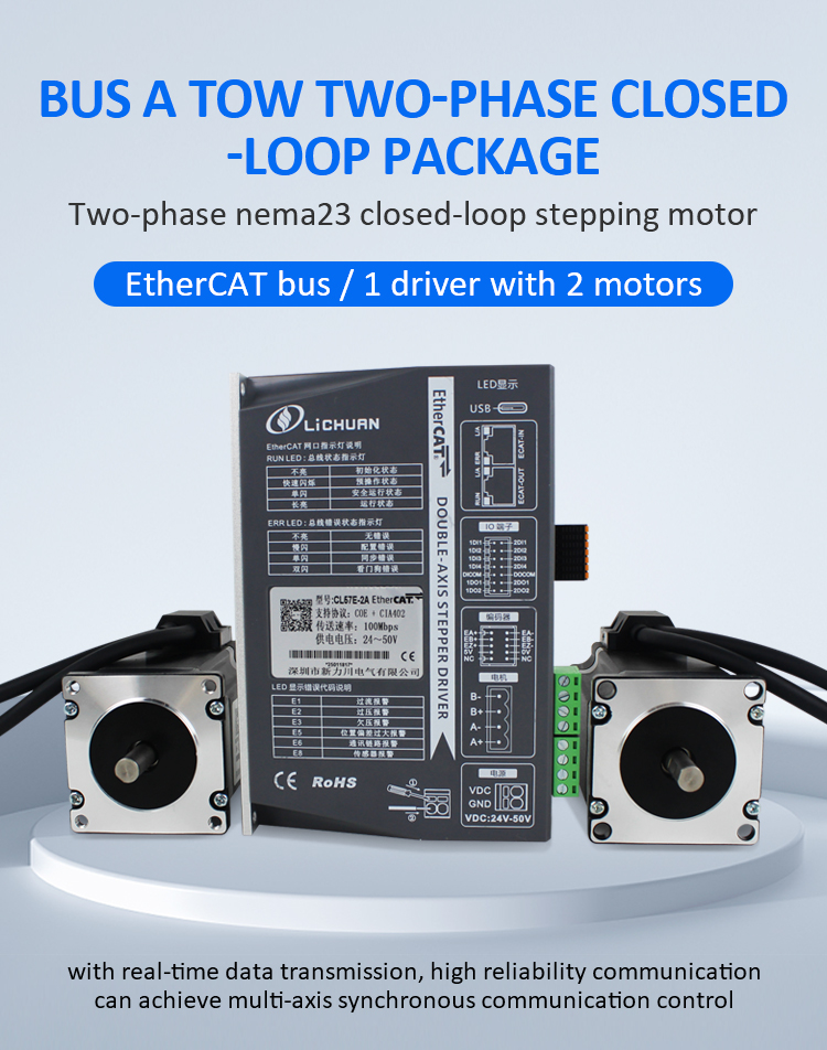 EtherCAT 2Phase Nema24 4-осевой комплект драйверов шагового двигателя постоянного тока с замкнутым контуромНовые продукты EtherCAT 2Phase Nema23 2-осевой комплект драйверов шагового двигателя постоянного тока с замкнутым контуром, изготовленный в Китае с CE/ROHS от LICHUAN®. Наша фабрика является известным производителем и поставщиком комплектов драйверов шаговых двигателей EtherCAT 2Phase Nema23 2-Axis DC с замкнутым контуром в Китае. Наш продукт отличается высоким качеством/долговечностью/стабильностью работы и низкой ценой. И мы предоставляем индивидуальные услуги.