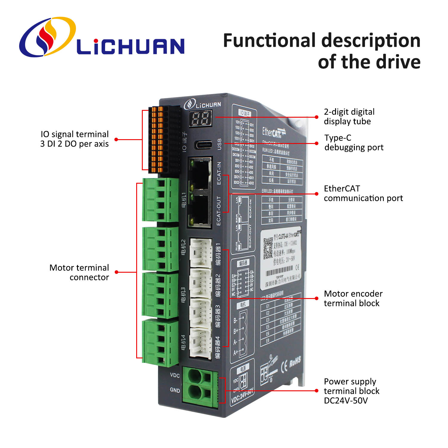 EtherCAT 2Phase Nema24 4-осевой комплект драйверов шагового двигателя постоянного тока с замкнутым контуромНовые продукты EtherCAT 2Phase Nema24 4-осевой комплект драйверов шагового двигателя постоянного тока с замкнутым контуром, изготовленный в Китае с CE/ROHS от LICHUAN®. Наша фабрика является известным производителем и поставщиком комплектов драйверов шаговых двигателей EtherCAT 2Phase Nema24 4-Axis DC с замкнутым контуром в Китае. Наш продукт отличается высоким качеством/долговечностью/стабильностью работы и низкой ценой. И мы предоставляем индивидуальные услуги.