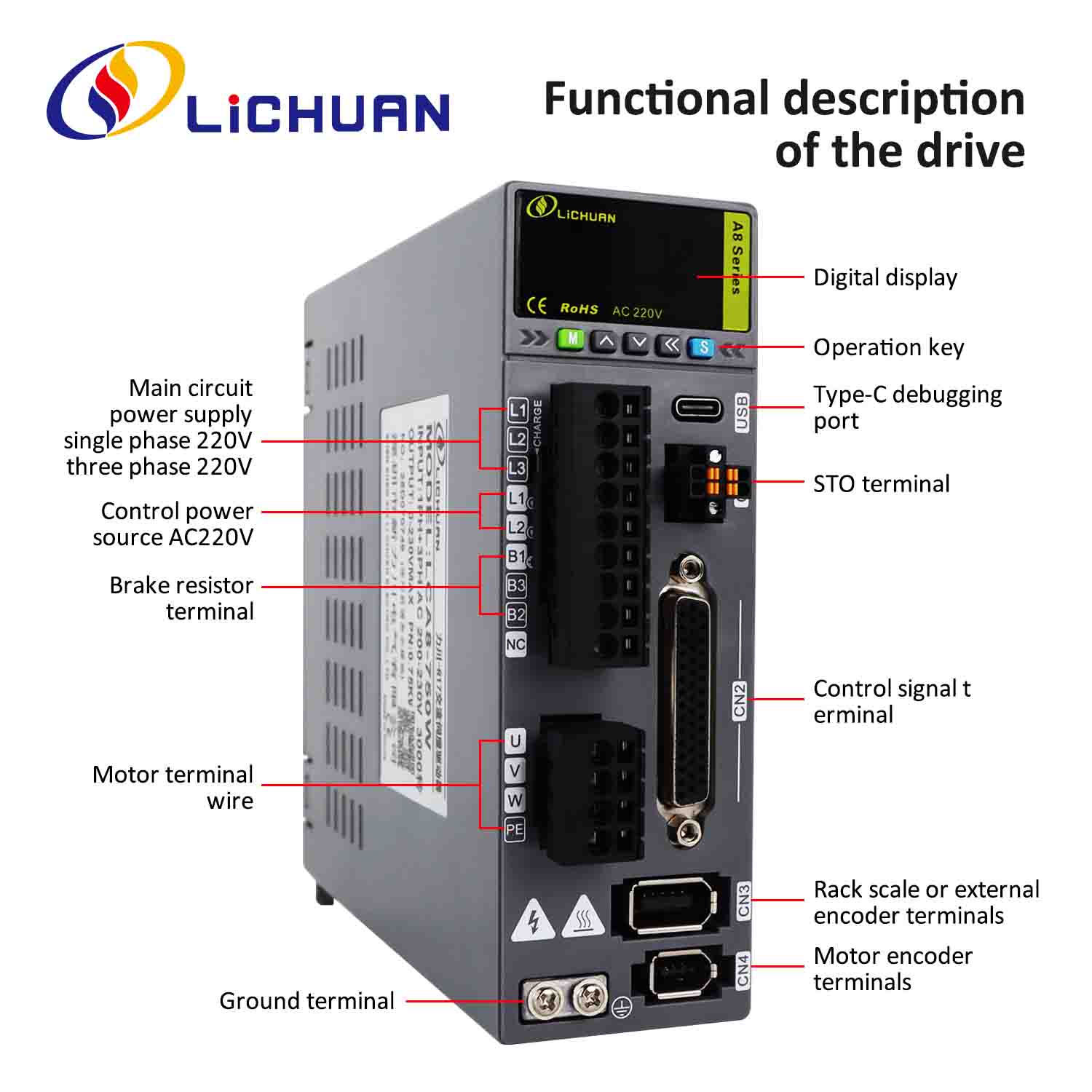 The Комплект драйверов серводвигателя переменного тока Lichuan A8 высокой точности STO АБЗфункционирует за счет интеграции трех прецизионных подсистем: