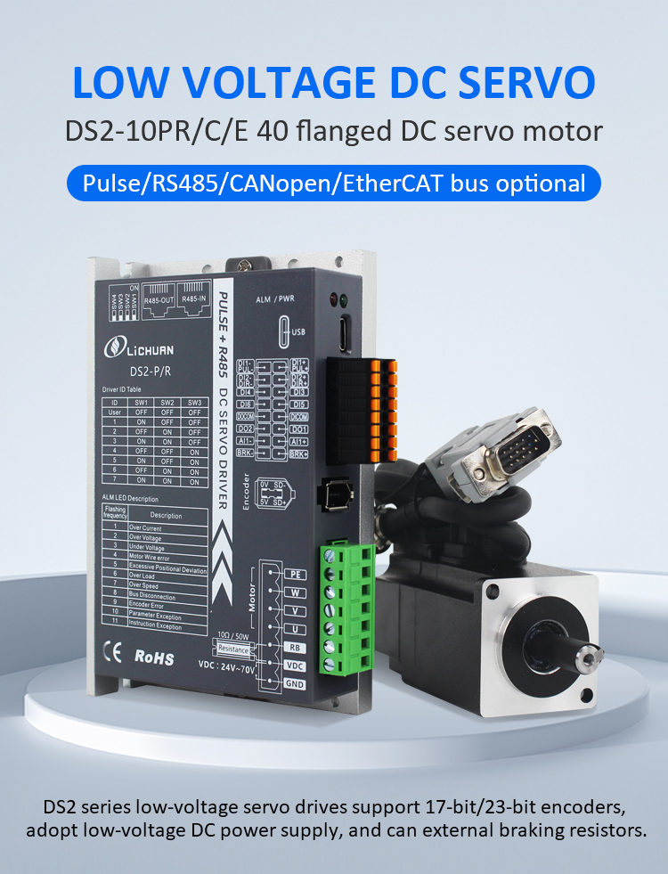 EtherCAT 2Phase Nema24 4-осевой комплект драйверов шагового двигателя постоянного тока с замкнутым контуромНовые продукты Pulse/RS485/CANopen/EtherCAT 40 ФЛАНЦЕВЫЙ 100 Вт, 17/23-битный инкрементный/абсолютный энкодер, комплект драйверов для низковольтных серводвигателей постоянного тока, изготовленный в Китае с CE/ROHS от LICHUAN®. Наша фабрика является известным производителем и поставщиком комплектов драйверов серводвигателей постоянного тока низкого напряжения Pulse/RS485/CANopen/EtherCAT 40 с фланцами мощностью 100 Вт в Китае. Наш продукт отличается высоким качеством/долговечностью/стабильностью работы и низкой ценой. И мы предоставляем индивидуальные услуги.