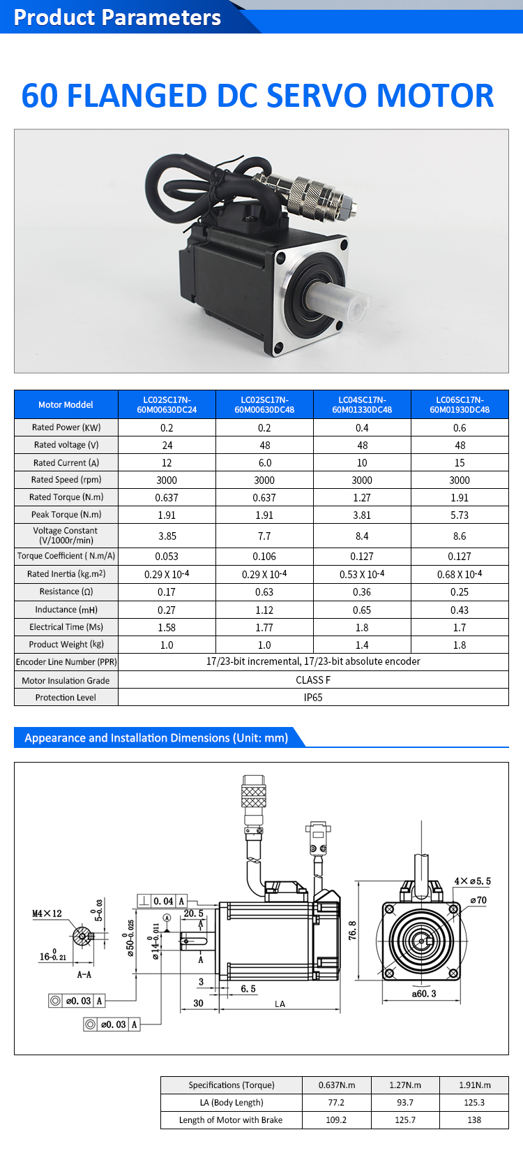 Комплект драйверов серводвигателя постоянного тока низкого напряжения Pulse/RS485/CANopen/EtherCAT 60 с фланцами, 400 Вт